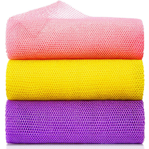 GIGULES, 3 Pieces African Net Bath Sponge African Exfoliating African Scrubbing Long Net Rag African Wash Net Shower Body Scrubber, Yellow Pink Purple