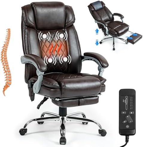 Casio400lbs Executive Leather Office Chair with Ergonomic Design and Reclining Function - Comfortable Computer Desk Chair with Integrated Foot Rest-Brown & Casual