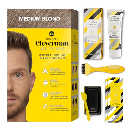 View full detailsCleverman Medium Blond All-in-One Reusable Kit for Men's Natural-Looking Gray Coverage - Professional-Quality Hair, Beard & Mustache Color, Ammonia-Free