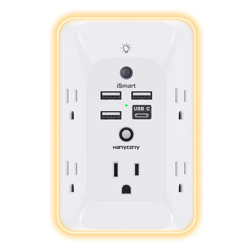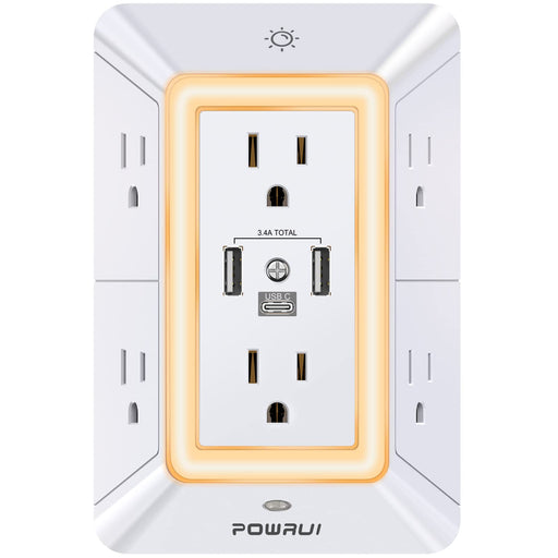 View full detailsMulti Plug Outlet Surge Protector - POWRUI 6 Outlet Extender with 3 USB Ports (1 USB C) and Night Light, 3-Sided Power Strip with Adapter Spaced Outlets - White,ETL Listed
