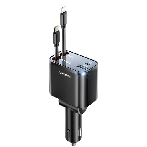 SUPERONEBrand: SUPERONEColor: BlackFeatures: Convenient Retractable Cables: Unclutter your car interior with the SUPERONE Retractable Car Charger. Featuri...