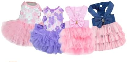View full detailsDog Dresses, Fashion Pet Dog Clothes, Striped Mesh Puppy Dogs Princess Dresses (Purple/Pink(4pack), Medium)