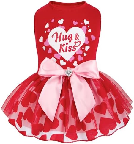 View full detailscyeollo Valentine's Day Dog Dress Holiday Dog Clothes Heart Print Tulle Doggie Dresses for Small Dogs Girls Party Outfit Puppy Cats Apparel,Red XS