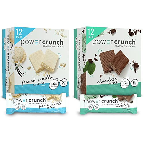 View full detailsPower Crunch Whey Protein Bars, High Protein Snacks with Delicious Taste, Variety Pack, French Vanilla & Chocolate Mint, 1.4 Ounce (24 Count)