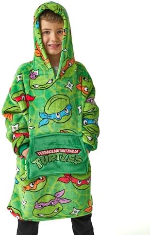 Teenage Mutant Ninja Turtles Boys Wearable Hooded Blanket | Green All Over Print Fleece Hoodie | Pullover Cartoon Loungewear