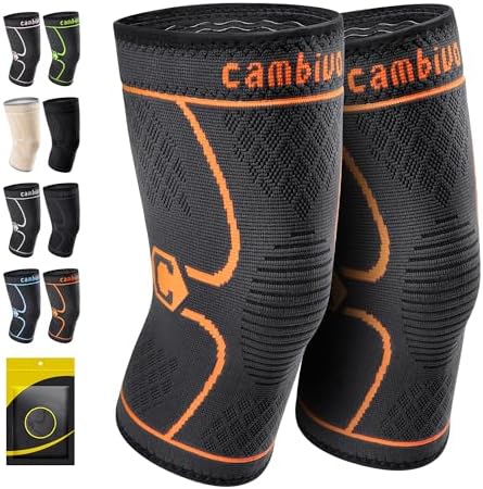 View full detailsCAMBIVO 2 Pack Knee Brace, Knee Compression Sleeve Support for Men and Women, Knee Pads for Running, Hiking, Meniscus Tear, Arthritis,Joint Pain Relief (Orange,Small)