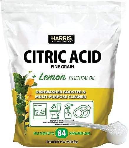 View full detailsHarris Citric Acid Dishwasher Booster and Multipurpose Cleaner, 14oz, Cleans 84 Dishwasher Loads, with Scoop Included