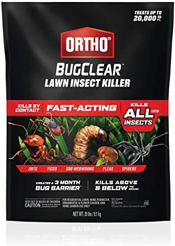 View full detailsOrtho BugClear Lawn Insect Killer - Kills Ants, Ticks, Armyworms, Sod Webworms, Fleas and Spiders in Your Yard, Fast-Acting, Kills By Contact Above and Below the Ground, 20 lb.