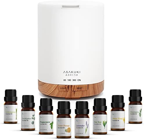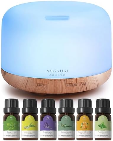 View full detailsASAKUKI Essential Oil Diffuser with Essential Oils Set, 500ml Aromatherapy Diffuser - 14 LED Colors & Auto Shut-Off, Top 6 Essential Oils - Lavender Eucalyptus Tea Tree Orange Peppermint Lemongrass