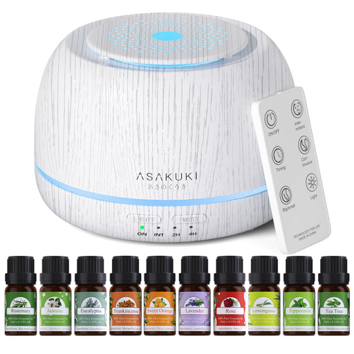ASAKUKIBrand: ASAKUKIColor: A-white With OilFeatures: AROMA DIFFUSERS WITH 10*10ML ESSENTIAL OIL GIFT SET: The 300ml water tank supports producing mist f...