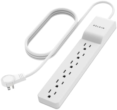 View full detailsBelkin 6-Outlet Surge Protector Power Strip, 6ft Cord, 360° Rotating Plug - 1080 Joules Protection