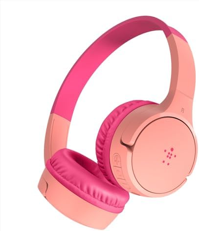 View full detailsBelkin SoundForm Mini - Wireless Bluetooth Kids Headphones with 30H Battery Life, 85dB Safe Volume Limit, Built-in Microphone - Kids On-Ear Earphones for iPhone, iPad, Fire Tablet & More - Pink