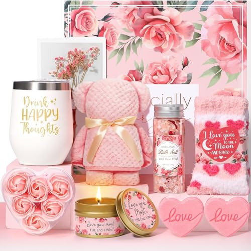 View full detailsBirthday Gifts for Women Self Care Gifts Get Well Soon Gifts, Rose Relaxing Spa Gifts Basket Care Package w/ Luxury Flannel Blanket, Unique Christmas Gifts for Mom Her Friend Sister Wife Grandma