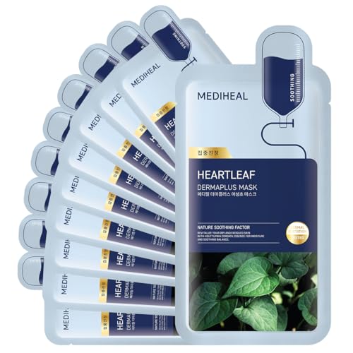 View full detailsMediheal Dermaplus Heartleaf Mask (10 Counts) - Daily Vegan Mask for Soothing Skin with Panthenol & Hyaluron, Korean Self Skin Care Sheet Mask