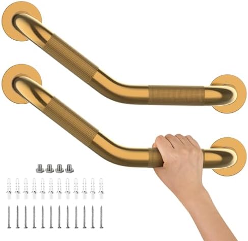View full details20 Inch Anti Slip Shower Grab Bar Gold, Munzong 2 Pack Bathroom Grab Bar, Knurled Bathroom Balance Bar,Safety Hand Rail Support Handicap Elderly Injury Senior Assist Bath Handle