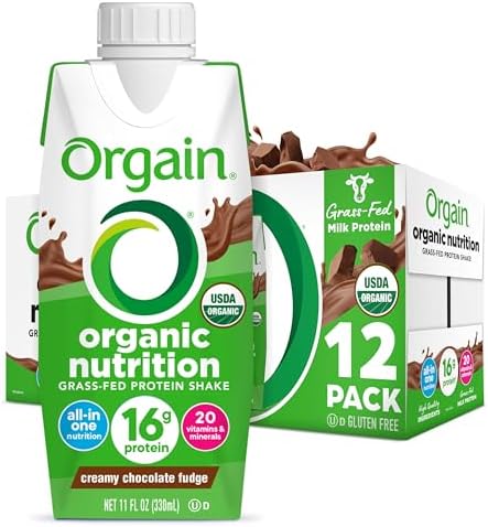 View full detailsOrgain Organic Nutritional Protein Shake, Creamy Chocolate Fudge - 16g Grass Fed Whey Protein, Meal Replacement, 20 Vitamins & Minerals, Fruits & Vegetables, Gluten Free, Non-GMO, 11 Fl Oz (12 Pack)