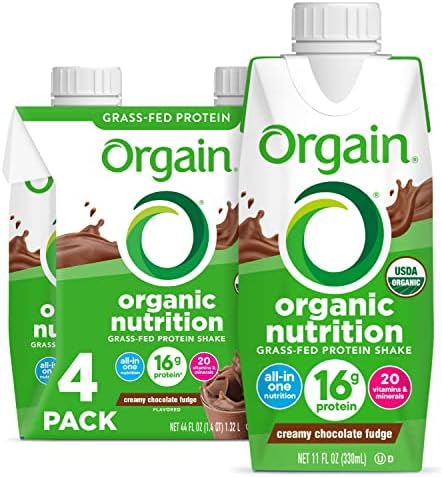 View full detailsOrgain Organic Nutritional Protein Shake, Creamy Chocolate Fudge - 16g Grass Fed Whey Protein, Meal Replacement, 20 Vitamins & Minerals, Fruits & Vegetables, Gluten Free, Non-GMO, 11 Fl Oz (4 Pack)