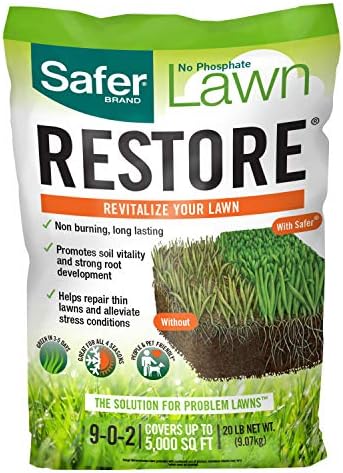 View full detailsSafer Brand 9335SR Lawn Restore Natural Lawn Fertilizer - Non-Burning Fertilizer - 9-0-2 NPK - Covers up to 5,000 Sq Ft