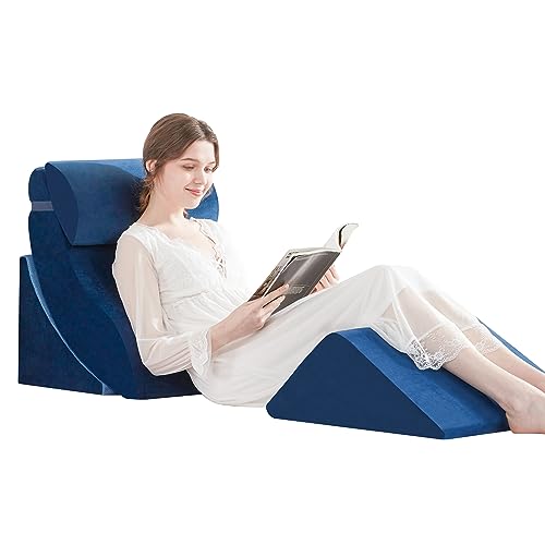 A2ZCOMFY Memory Foam Wedge Pillow Set for Sleeping, Post Surgery, Back Pain Relief - Blue