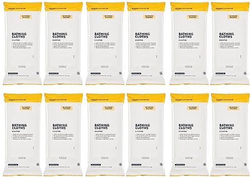 Details: AmazonCommercial Bathing Cloths offer a simple and easy alternative to traditional baths and showers and are particularly useful when soap and water are not available. These ultra-thick, soft cloths have a wash-cloth like feel. One package is one bath and can be heated in the microwave for a short time to provide a real bath-like experience when used as directed. Ideal for homes and healthcare in hospitals, clinics, long-term care facilities, assisted living, nursing homes, hospice, and in home healthcare situations. Fortified with aloe and vitamin E to nourish skin, this product is pH balanced and hypoallergenic. Simply follow the 8-step washing method using a fresh cloth for each area of the body. Rinsing is not required.