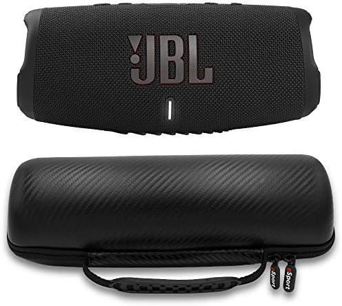 JBL Charge 5 Waterproof Portable Speaker with Built-in Powerbank and gSport Carbon Fiber Case (Black)
