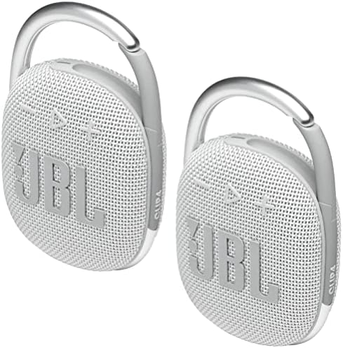 JBL 2 Pack Clip 4 Waterproof Wireless Audio Bluetooth Speaker Bundle (White)