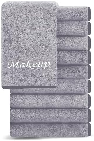 Cosy Family 10 Pack Makeup Remover Wash Cloths - Soft Microfiber Fingertip Facial Cleansing Cloths for Hand and Make Up, 12 x 12 in, Grey