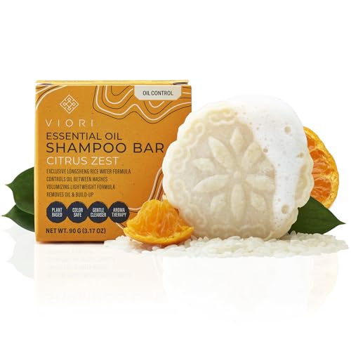 Viori Citrus Zest Essential Oil Shampoo Bar Made with Rice Water - Handcrafted All Natural Shampoo Bars - Sulfate Free Shampoo