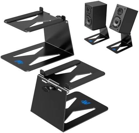 Mounting Dream Desktop Speaker Stand, Tilted Studio Monitor up to 15°with Anti-Vibration Pads, Set of 2 Bookshelf Speaker Stand, Surround Sound Speaker Stand -33 LBS