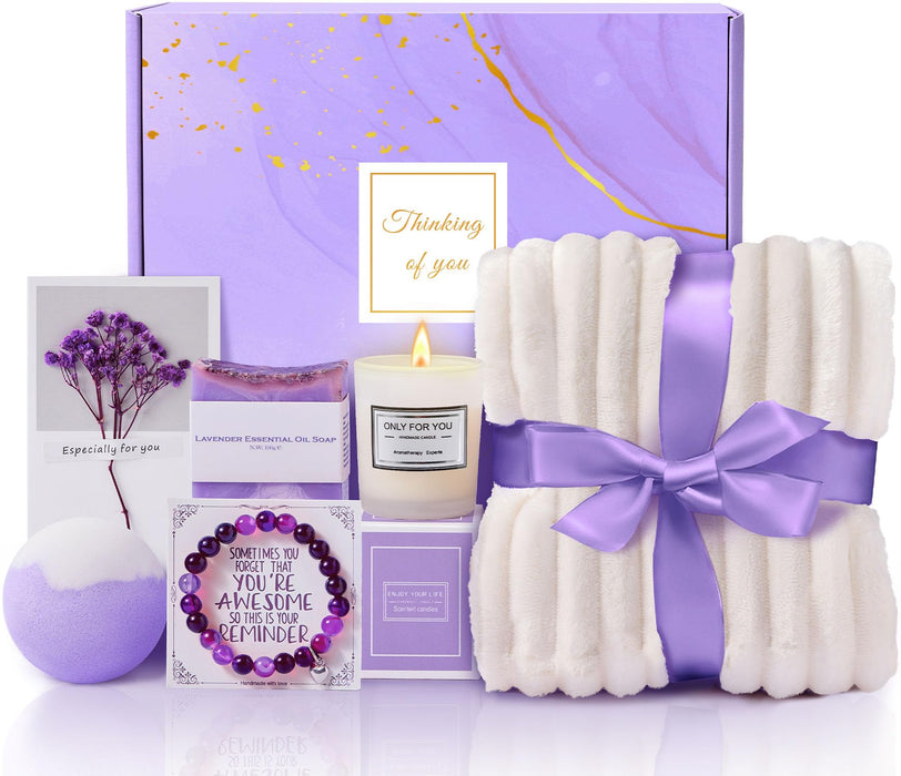 Birthday Gifts for Women - Valentines, Mothers Day, Christmas Gifts for Women, Mom, Wife, Girlfriend, Best Friend - Self Care Gifts Get Well Soon Gifts, Lavender Relaxing Spa Gift Basket Care Package