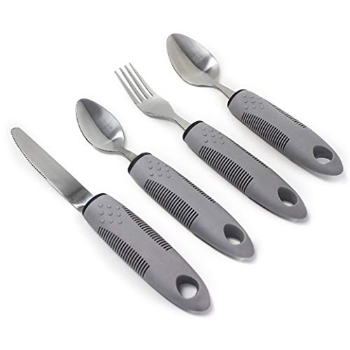 BodyHealt Easy Grip Adaptive Utensils - Weighted Utensils for Elderly, Disabled & Handicapped. Knives Forks & Spoons Set for Arthritis, Parkinsons Aid, Hand Muscle Weakness & Stroke Recovery Equipment