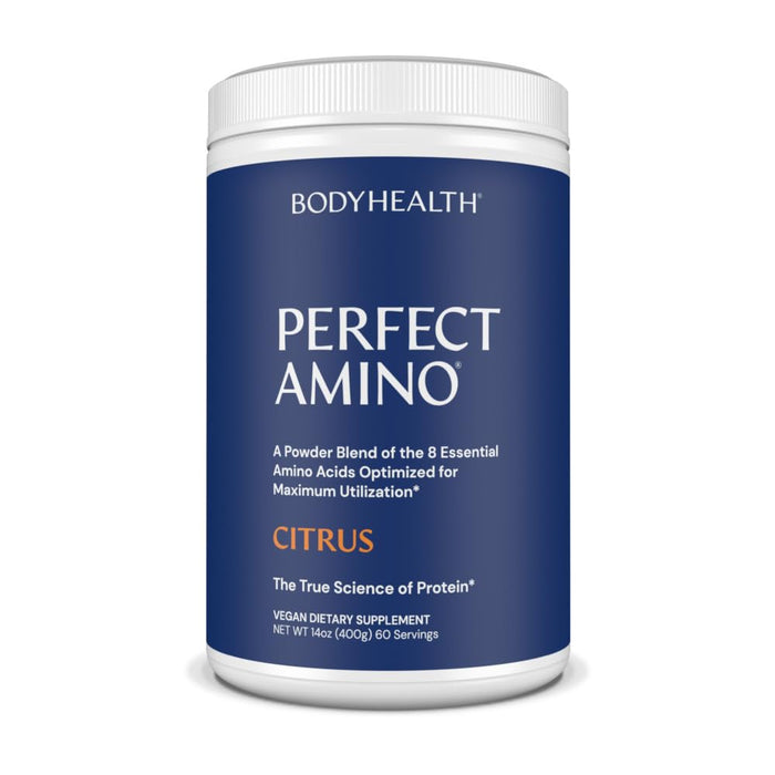 BodyHealth PerfectAmino Powder - BCAA and EAA Powder for Pre and Post Workout - Vegan Amino Acid Energy Drink Powder for Men and Women to Support Lean Muscle and Recovery - Citrus - 60 Servings