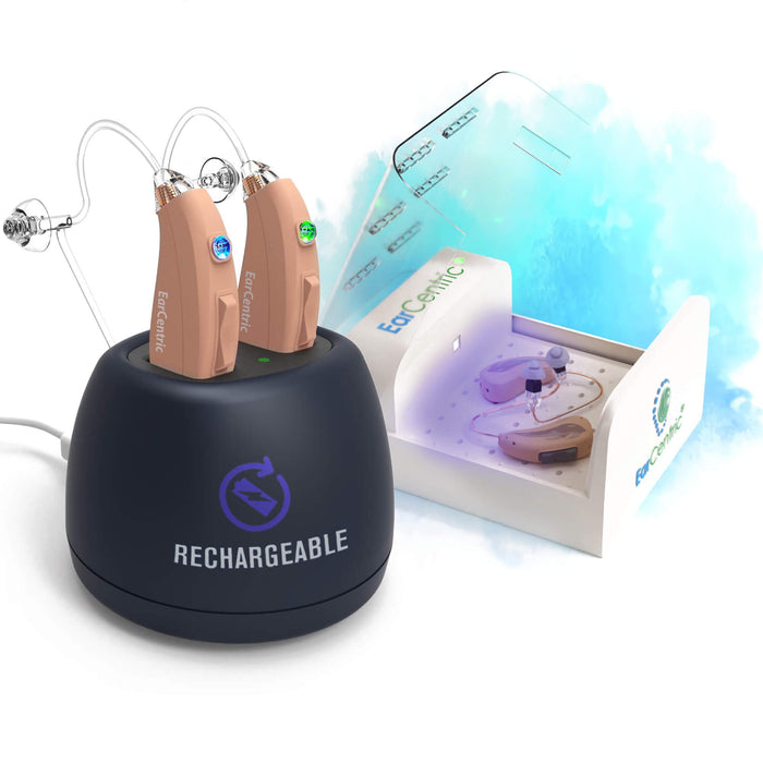 [Bundle] EarCentric EasyCharge Rechargeable Hearing Aids (Beige) + RapidDry Dehumidifier Dryer [UV-C Ultraviolet]