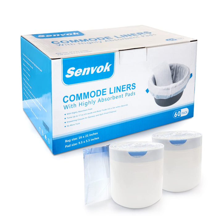 Commode Liners with Highly Absorbent Pads - [Pack of 60] - Medical Grade - Leak-Proof - Bedside Commode Liners Disposable - Toilet Liners Disposable Adult