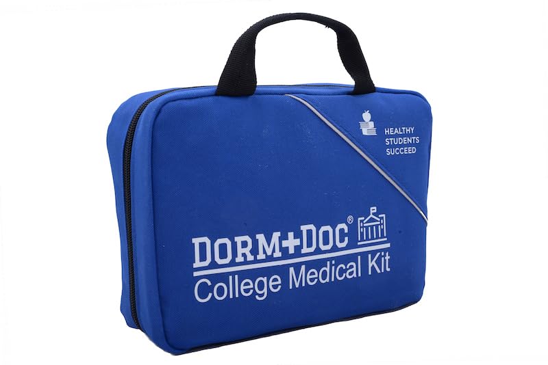 DormDoc 175 Piece Emergency First Aid Kit for College Students - Dorm Room Medical Kit with OTC Medicines and Bandages - Health Kit in Compact Zipper Case for School, Sports, Vehicle and Travel Blue