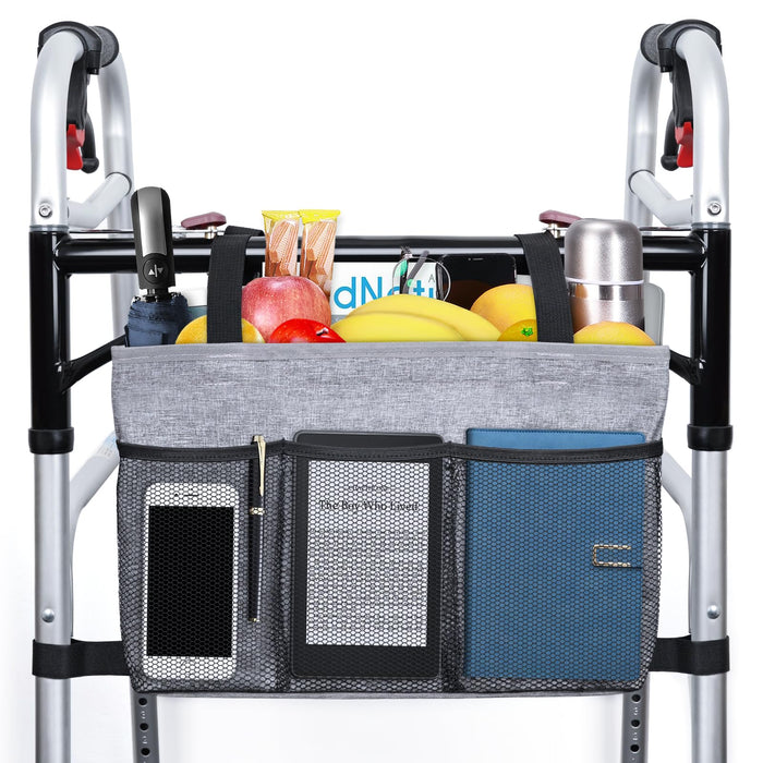 Dotday Walker Bag with Cooler Bag, Water Resistant Storage Bag Walker Accessories with Temperature Controlled Pocket for Seniors, Walker Bag Fit for Walkers, Rollator, Wheelchair & Scooters-Grey