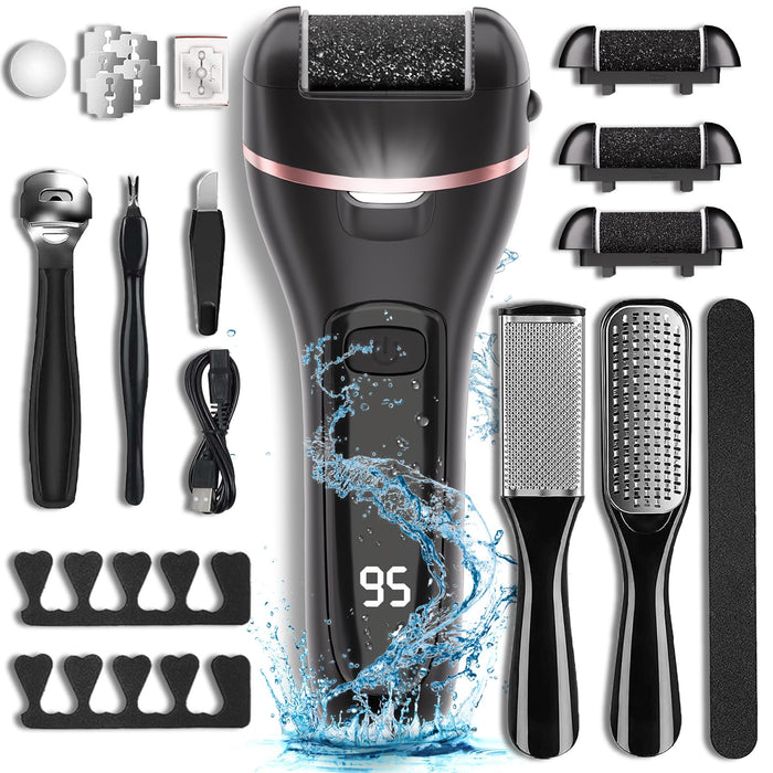 Electric Callus Remover for Feet with 3 Roller Heads 2 Speed Rechargeable Waterproof Professional Pedicure Kit 17 in 1 Foot File Tools Perfect for Dead Hard Cracked Dry Skin