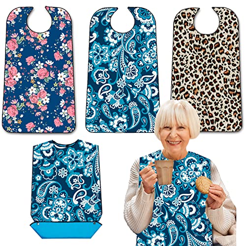 EpoBob 3 Pack Adult Bibs with Crumb Catcher, Washable and Adjustable Adult Bibs for Women Elderly Seniors Floret 02
