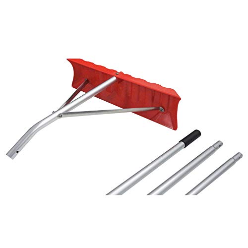 Details: Remove the snow from your roof quickly and easily with the Poly Roof Rake from Extreme Max Products! Offering an excellent reach, there are not many itches this rake can't scratch. The roof rake's 6" x 23" poly blade is perfect for any style slanted roof, including metal and shingle roofs. With the poly blade and lightweight aluminum handle, this roof rake is easy to maneuver. When the job is complete, simple snap-buttons allow a quick handle disassembly for storage in even the smallest garage corners.