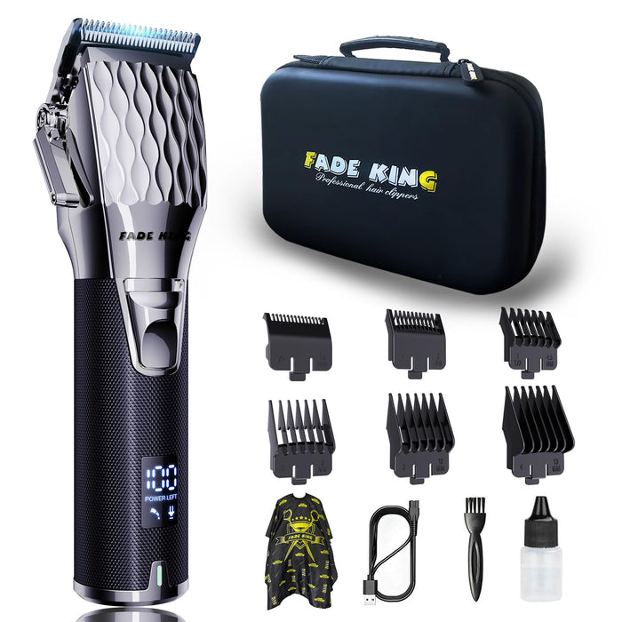FADEKING® Professional Hair Clippers for Men - Cordless Barber Clippers for Hair Cutting, Rechargeable Hair Beard Trimmer for Men with LCD Display & Travel Case, Gifts for Men