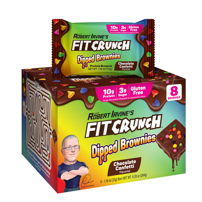 FITCRUNCH Dipped Protein Brownies, Designed by Robert Irvine, 10g of Protein & 3g of Sugar (8 Brownies, Chocolate Confetti)