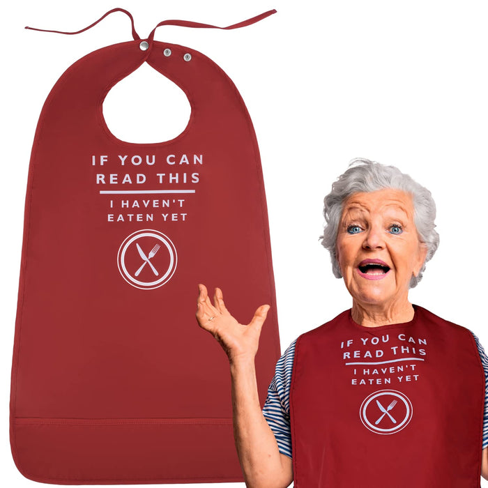 Funny Adult Bibs for Women & Men. Washable Reusable Clothing Protectors for Adults. Waterproof Backing + Built-In Crumb Catcher