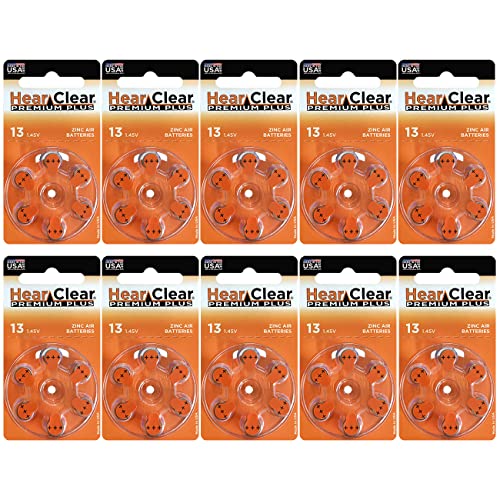 Hear Clear Size 13 PR48 Hearing Aid Batteries Orange Tab (60 Batteries)