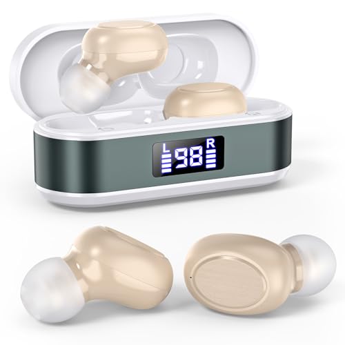 Hearing Aids for Hearing Loss, Rechargeable Hearing Aids for Seniors with Noise Cancelling, OTC Invisible Hearing Amplifier for Seniors Adults Magnetic Contact Charging Box