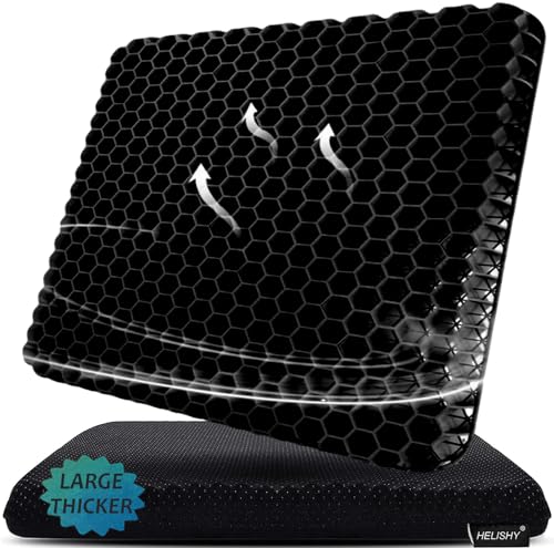 Helishy Gel Wheelchair Seat Cushion for Long Sitting, Extra Large & Thick Seat Cushion with Non-Slip Cover - Coccyx, Sciatica & Back Pain Relief - Wheelchair Cushions - Office Chair Car Seat Cushion