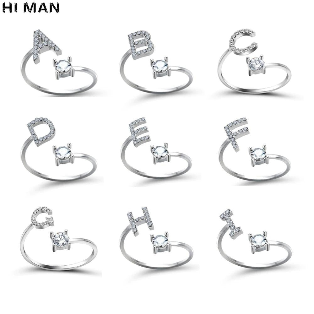 New Design Fashion Pavé CZ Adjustable 26 Initial Letter Ring For Women Simple Elegant Jewelry Friendship Gift Wholesale