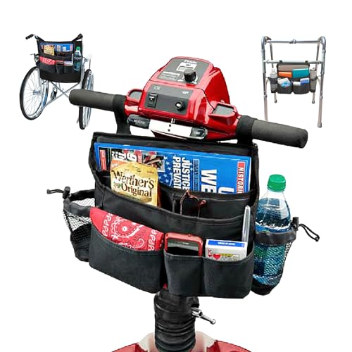 High Road Mobility Walker Bag, Wheelchair Pack and Scooter Bag with 4 Pockets and 2 Bottle Holders for Adult Daily Living (Black)