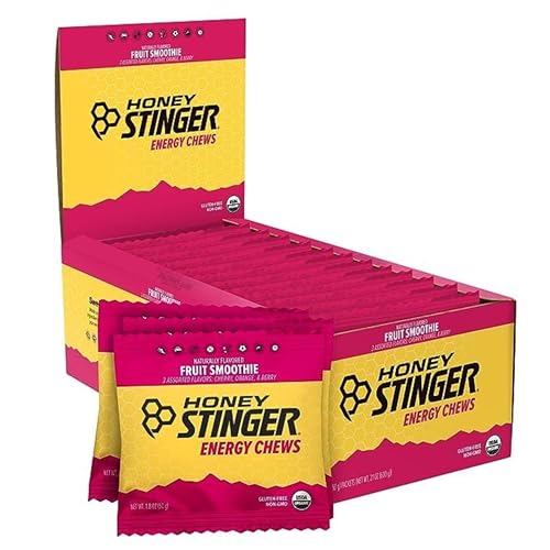 Details: Cherry, Berry and Orange! As Honey Stinger’s most popular energy chew flavor, our Fruit Smoothie Blend includes cherry blossom, orange blossom, and mixed berry. A perfect option for those who can’t decide on just one flavor. Certified organic, certified gluten free, fortified with 70% RDA vitamin C, this is a delicious snack or energy source! Sweetened with organic honey and tapioca syrup, these chews provide a natural and sustainable source of energy with the multiple carbohydrate sources: glucose, fructose, maltose, sucrose..