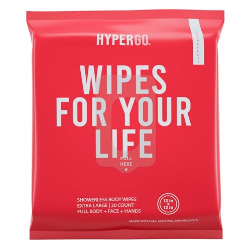 HyperGo Full-Body Rinse-Free Hypoallergenic Biodegradable Bathing Shower Wipes –All Natural, Refreshing Anytime, Post Workout, Camping, Travel, Daily Life, 12”x12” X-Large Grapefruit, Pack of 1