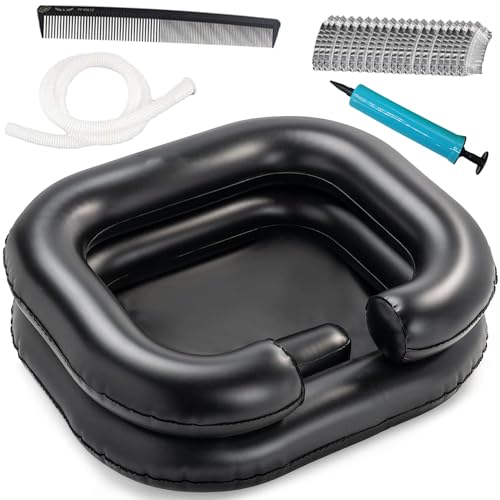Inflatable Shampoo Basin - Portable Hair Washing Bowl/Tub for Bedridden, Disabled,Injured, Elderly, Hair Washtub for Dreadlocks and at Home Sink Washing (Black)